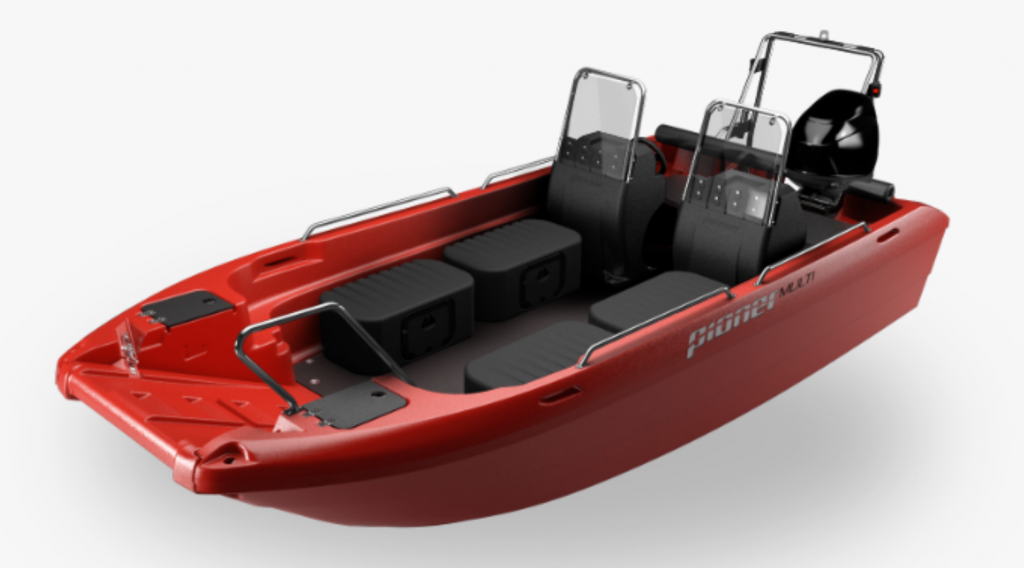 Rotomoulded Low Density Polyethylene is the material of the Pioner Multi’s hull. It is 100% recyclable, can be melted and reused to make other objects from this material. It is long-lasting since it resists chemical and climatic aggressions (sun, cold, heat, fuel splashes, acid …). It is elastic, so in light of an impact the material deforms to absorb the energy of the bump and returns to its original state. It is light as it has less density than water and floats. It is strong, with the same weight a polyethylene boat is much stronger than a fiber boat. It is electrically inert and immune, does not suffer or cause galvanic corrosion or electrolysis. It is robust, does not crack or puncture like pneumatic and semi-rigid when touching a sharp object. It can be easily repaired – damage can be removed with a hot air gun by heating a supply rod. It is soft, it does not scratch the other ships if it hit them. As a matter of fact, dock fenders have been manufactured with this material. Many of these qualities have made this material a favorite for construction of urban furniture, waste containers, playgrounds, pipes, fish farms …