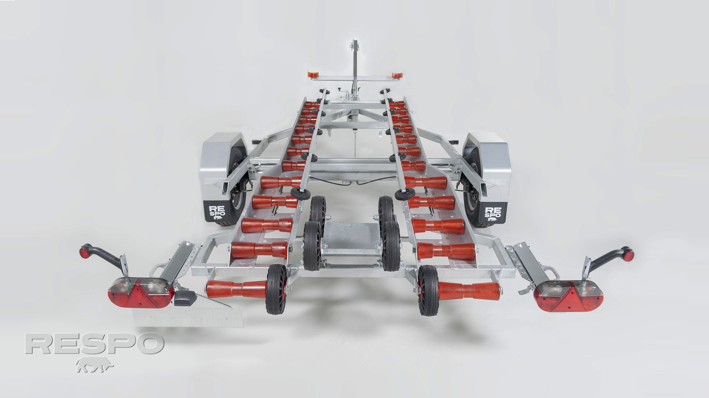 We offer you the official trailer for the Pioner Multi. Built by the shipyard, this trailer has a roller system specially designed for the trimaran hull of the Pioner Multi. Its tilting roller system greatly facilitates the maneuver of loading and unloading of the boat, as you can even leave the boat on the ground and load it from it. This feature along with the little draft of the boat allows us to put the Pioner Multi very easily in the water, without the need of a ramp specially enabled for it and practically anywhere. The trailer also has features to make it more practical and robust, such as reinforced metal fenders that serve as a step to board the boat above the trailer, a lathe turret specially designed for the bow of the Multi and some articulated lights and license plate holders that allow to raise and lower the boat of the trailer with these protected elements and out of the water.
